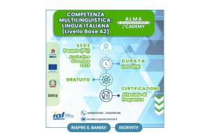 Sono ancora aperte le iscrizioni al corso gratuito di Italiano per Stranieri – livello A2, della durata di 100 ore, organizzato da IAL Marche nell’ambito del progetto finanziato dalla Regione Marche. Il percorso formativo offre la possibilità a cittadini italiani e stranieri, residenti o domiciliati nella regione e di età compresa tra i 18 e i 60 anni, di acquisire competenze linguistiche fondamentali per la vita quotidiana, lo studio e il lavoro.