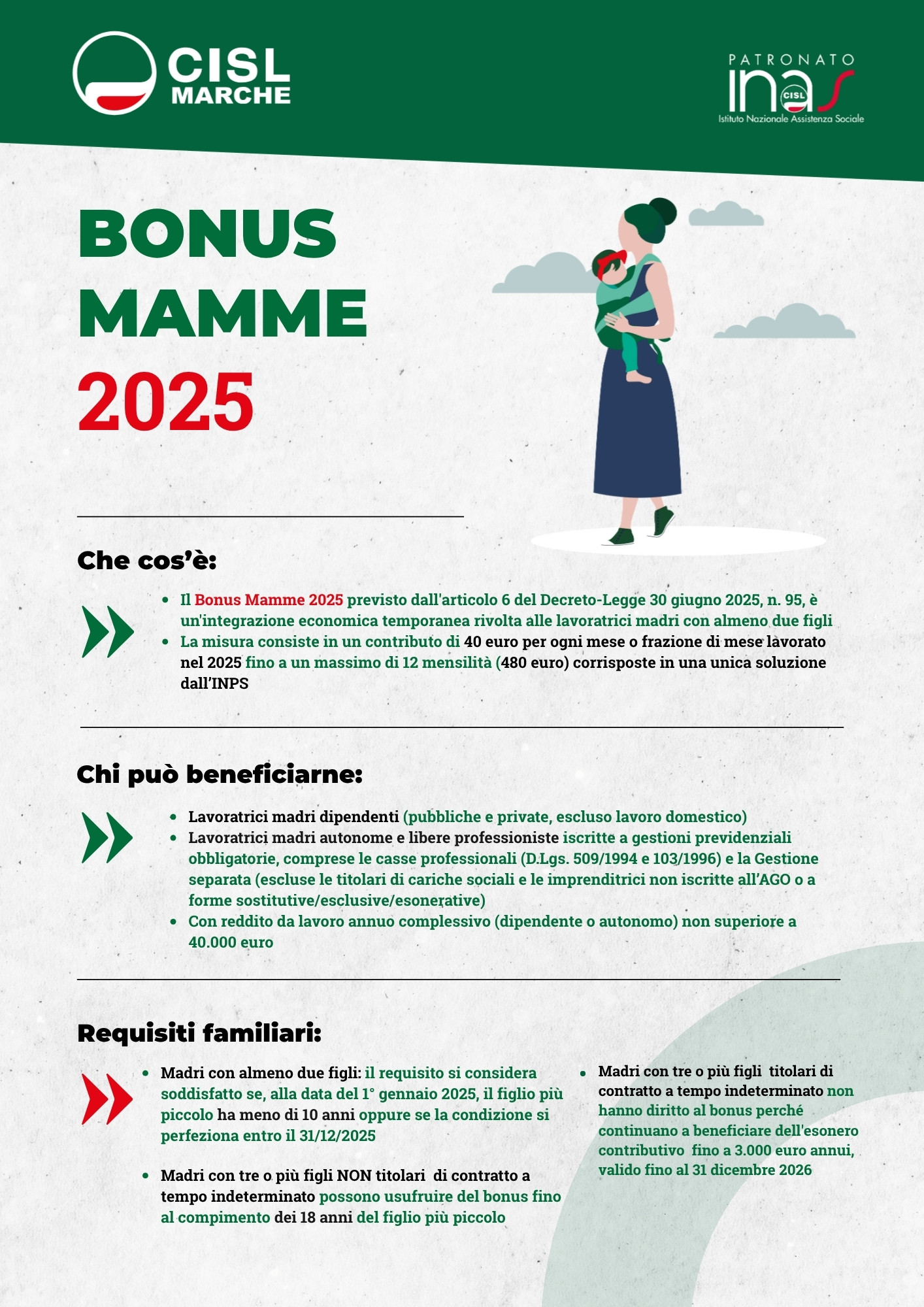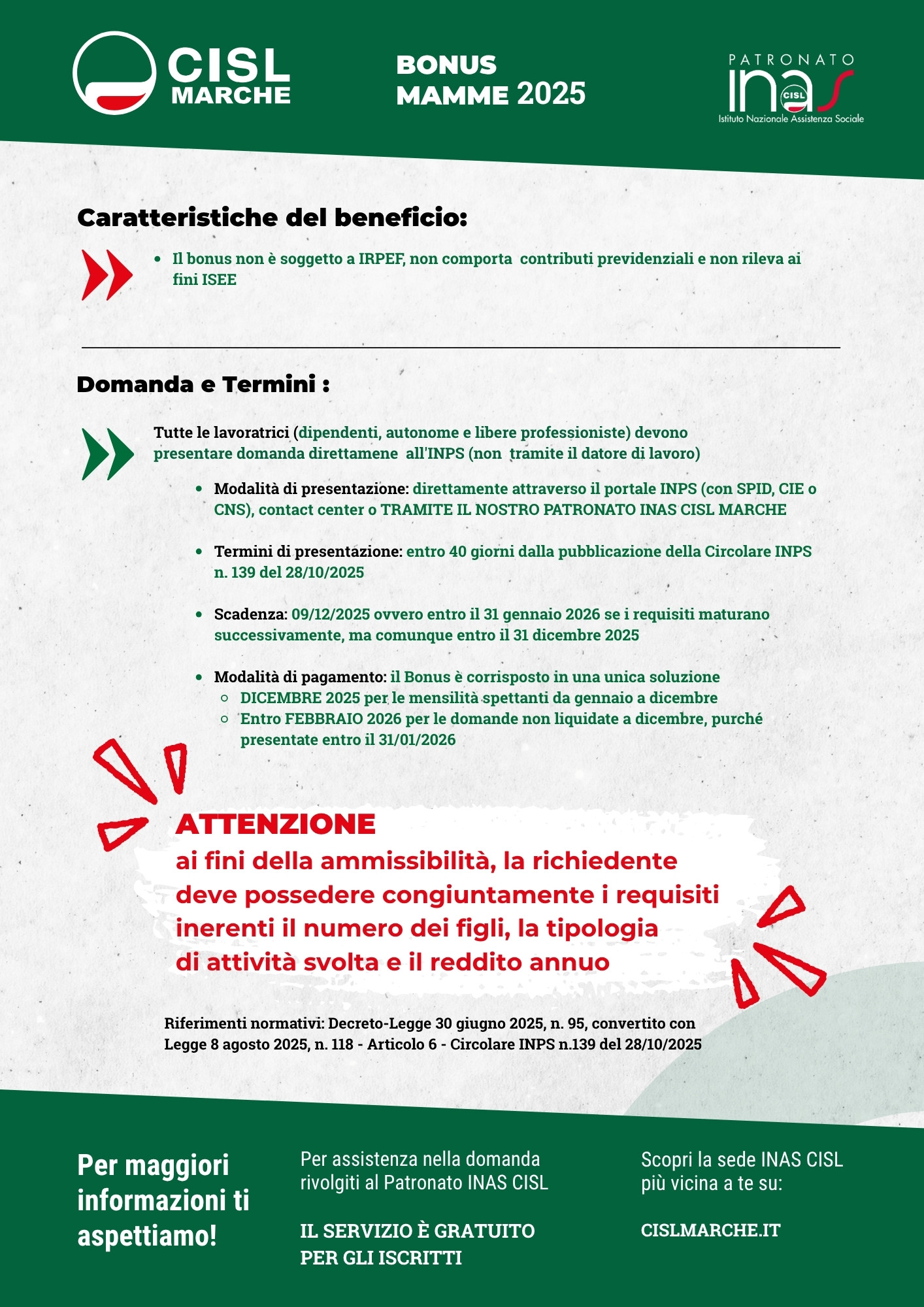 Per assistenza nella compilazione della domanda è possibile rivolgersi al Patronato INAS CISL Marche, che offre un servizio gratuito per le iscritte.