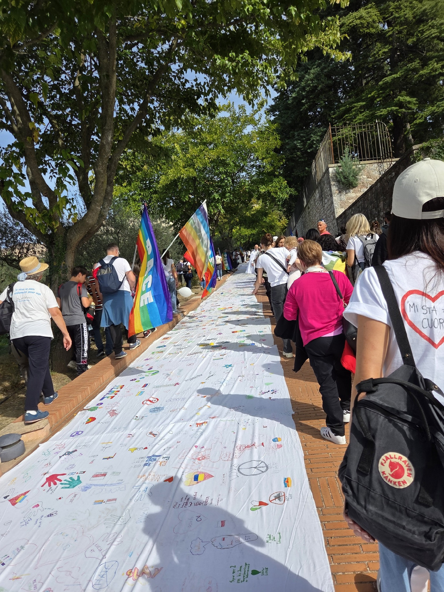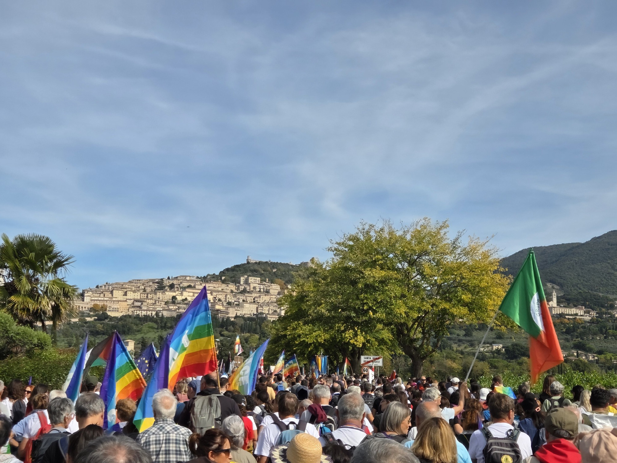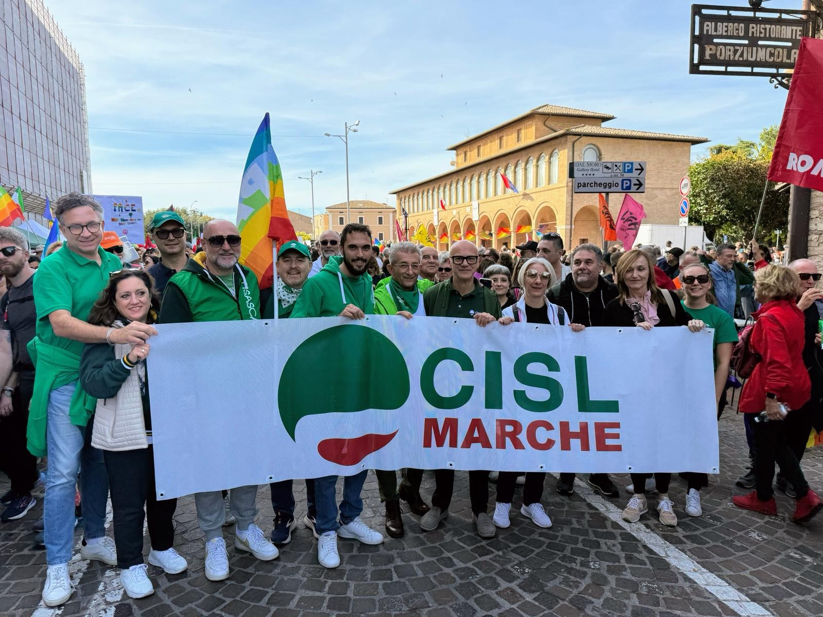 La CISL delle Marche ha partecipato, domenica 12 ottobre 2025, alla Marcia Perugia–Assisi per la Pace e la Fraternità. Un appuntamento che, quest’anno, ha assunto un valore particolarmente significativo, intrecciando alcuni anniversari cruciali della storia recente: gli 80 anni dalla Liberazione, gli 80 anni dalla fondazione delle Nazioni Unite, i 50 anni dell’Atto di Helsinki e i 10 anni dell’enciclica Laudato Sì.