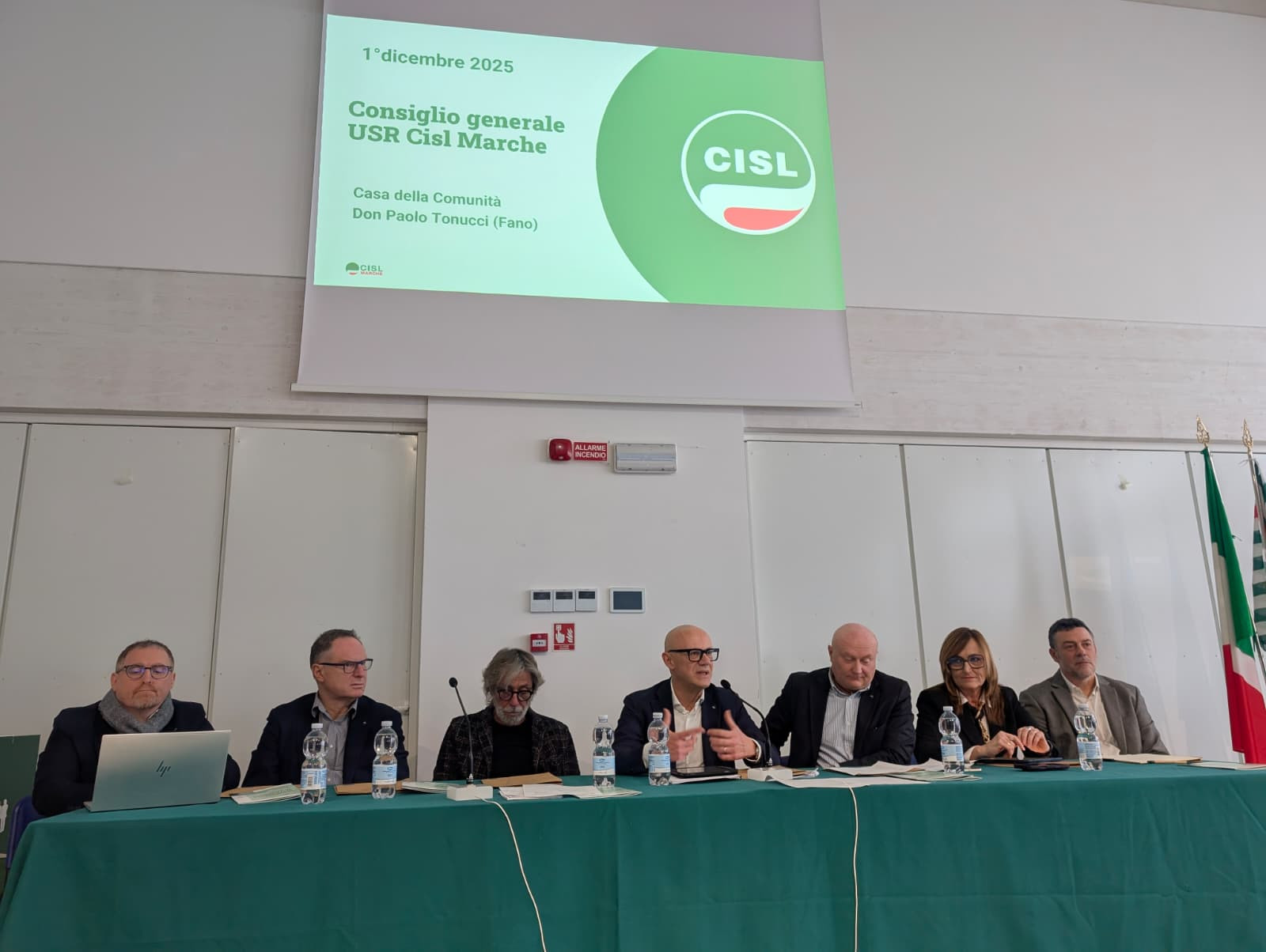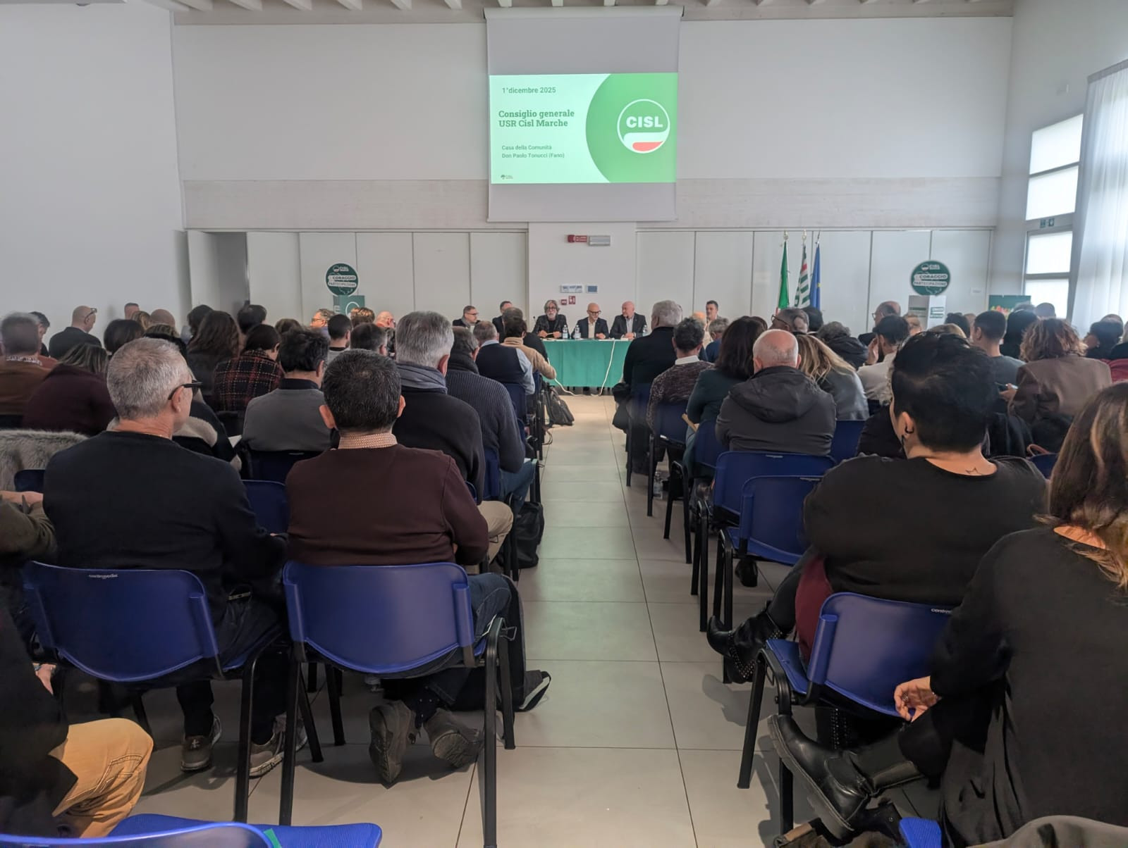 Fano scelta oggi per il consiglio generale della Cisl Marche, location la casa della comunità “don Paolo Tonucci” della parrocchia San Paolo. Scelta non casuale, del resto la Cisl è in missione (sindacale) da 75 anni (“75 anni di giustizia e di libertà, 75 anni di Cisl” è stato il messaggio di sintesi di un video celebrativo) e l’anniversario di fondazione è stato sottolineato dal segretario regionale Cisl Marche Marco Ferracuti nella relazione introduttiva .