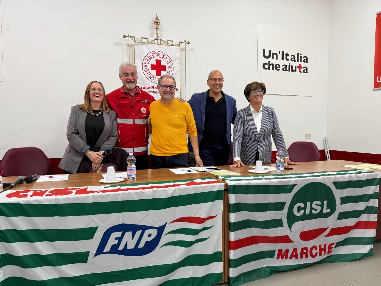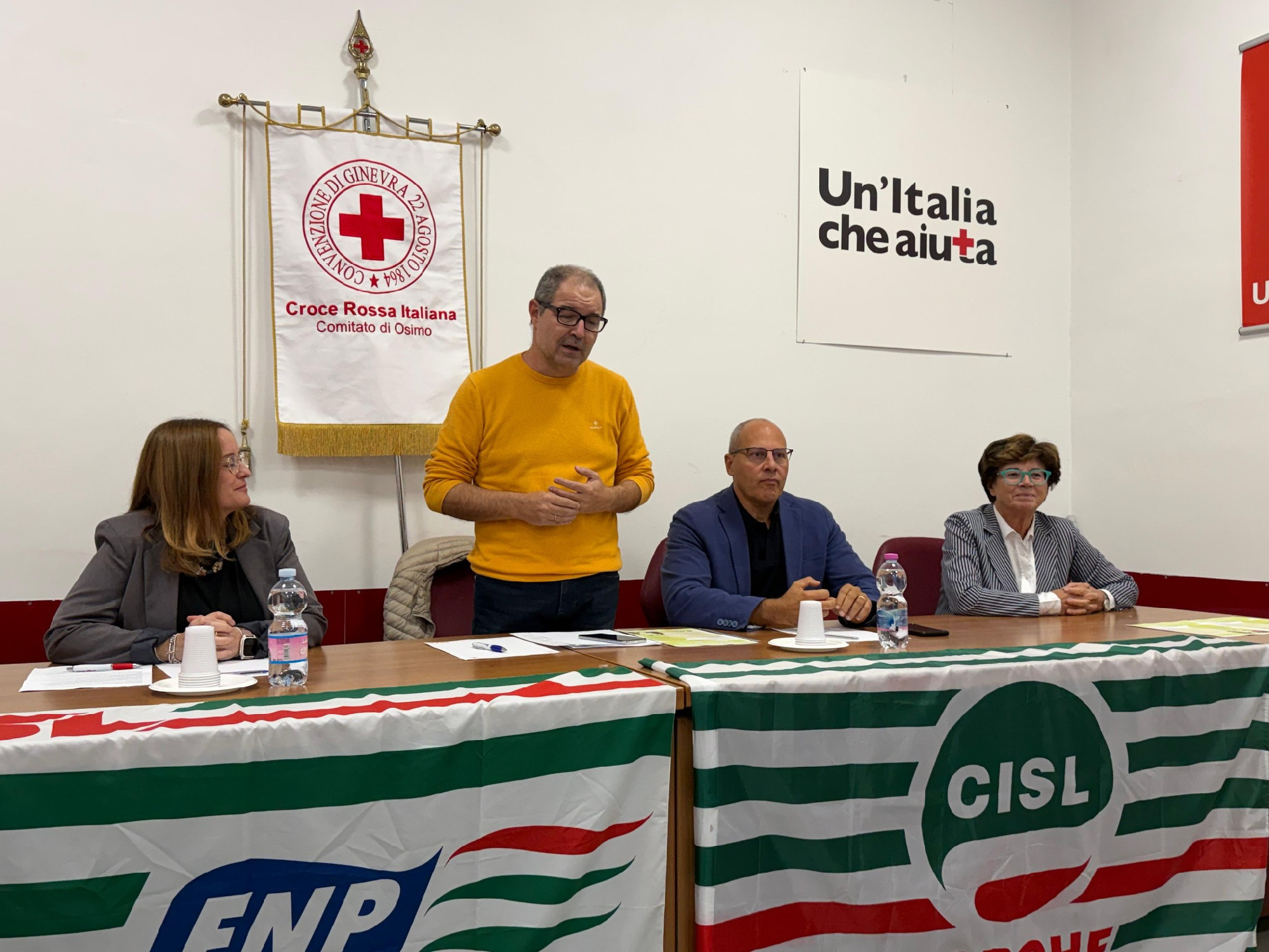 Ad aprire i lavori Adriano Antonella, Presidente CRI Osimo , Alessandro Mancinelli, Responsabile della CISL Ancona e Maria Rosaria Lucarelli, Segretaria FNP CISL Marche.