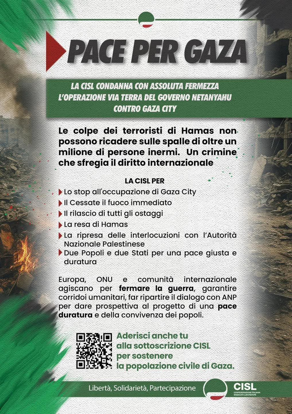 Un messaggio che unisce impegno sociale e difesa del sapere. «La ricerca è libera e la scienza – conclude Persia – deve restare sempre al servizio del bene comune. Sostenere gli aiuti umanitari promossi dalla CISL significa aiutare davvero la popolazione di Gaza».