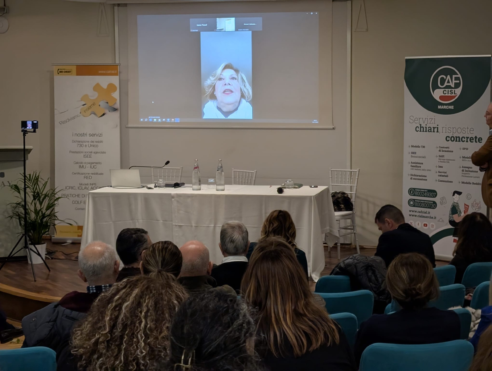 Uno dei momenti centrali della giornata è stato l’approfondimento con Luigina Mortari, professoressa ordinaria di Filosofia della cura all’Università di Verona, che ha offerto una chiave di lettura innovativa del lavoro nei servizi fiscali: un’attività non solo tecnica, ma profondamente sociale e di cura, capace di intercettare bisogni spesso latenti e di accompagnare le persone nelle difficoltà. A seguire, il direttore nazionale del Caf Cisl, Andrea Paoloni, ha presentato il quadro nazionale, evidenziando le performance del sistema e il contributo rilevante delle Marche nel contesto complessivo.