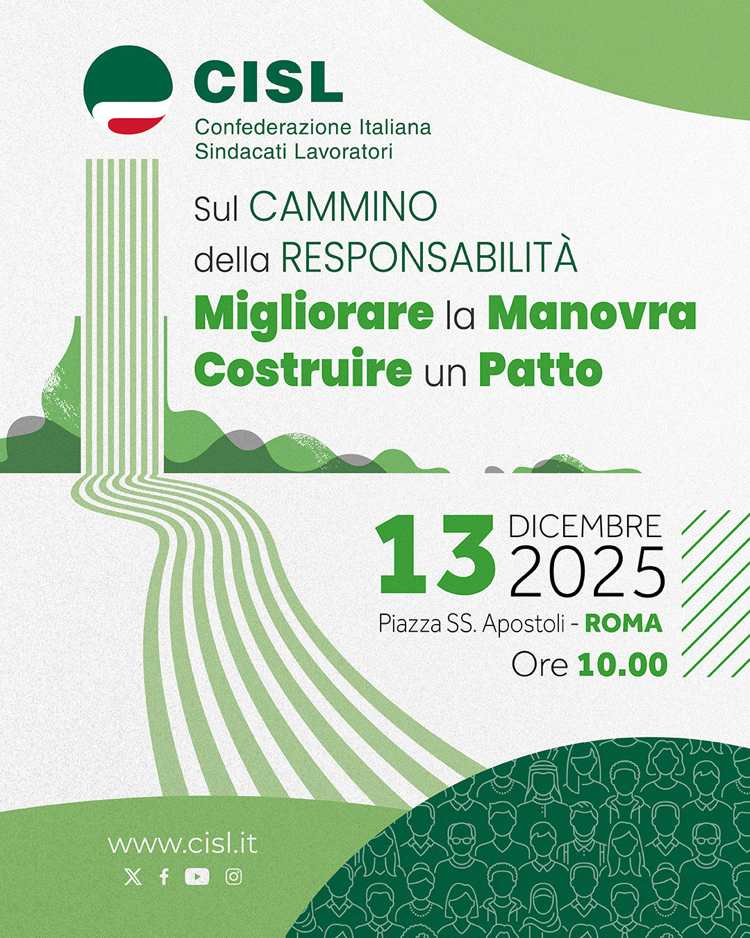 Il 13 dicembre, nella manifestazione nazionale a Roma, la Cisl chiederà dunque un progetto di sviluppo condiviso, che trovi risposte già nella Legge di Bilancio 2026 e che guardi con coraggio alle grandi trasformazioni che stanno attraversando la società, dal lavoro alle politiche industriali, fino alla sostenibilità sociale e ambientale.