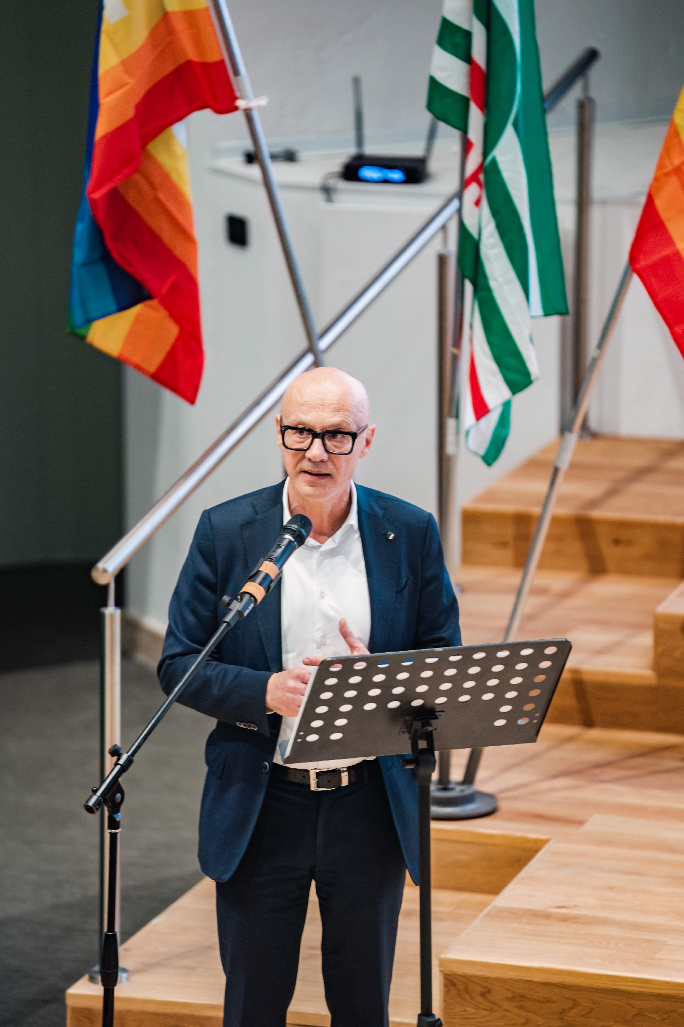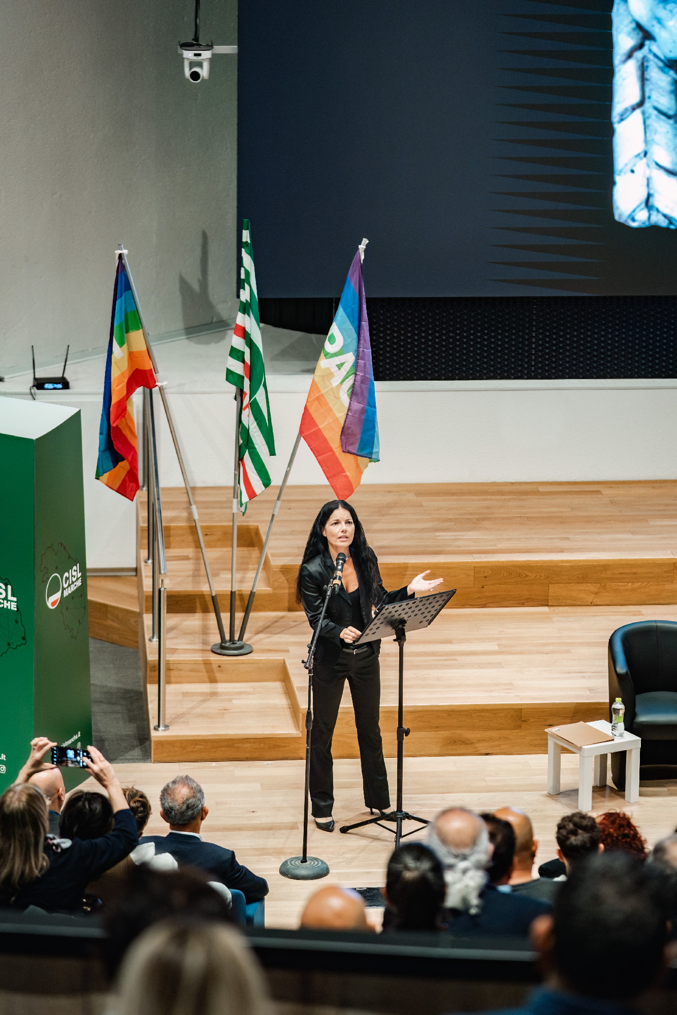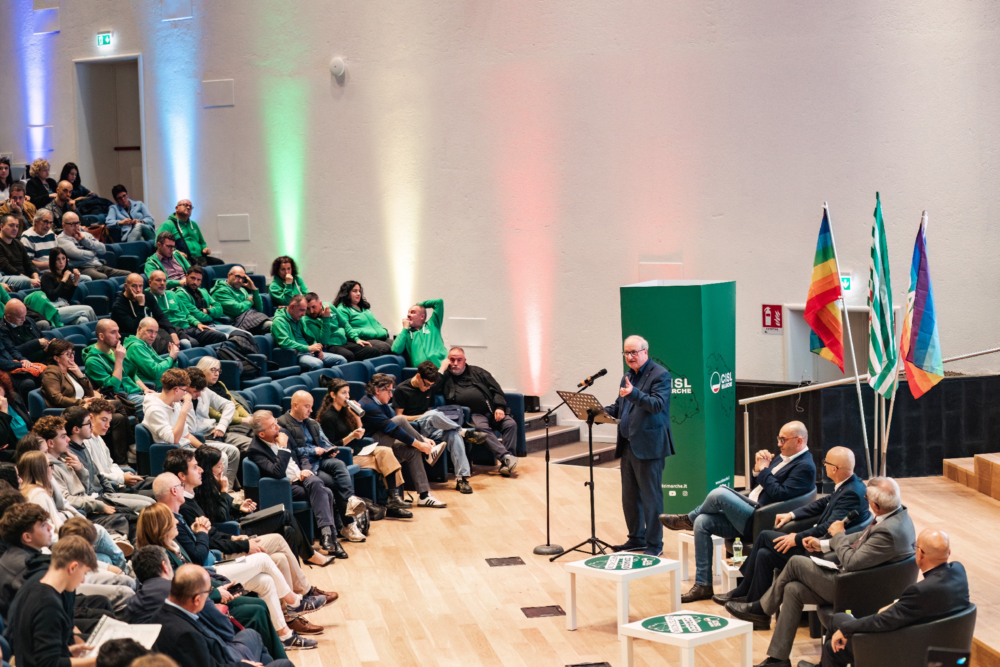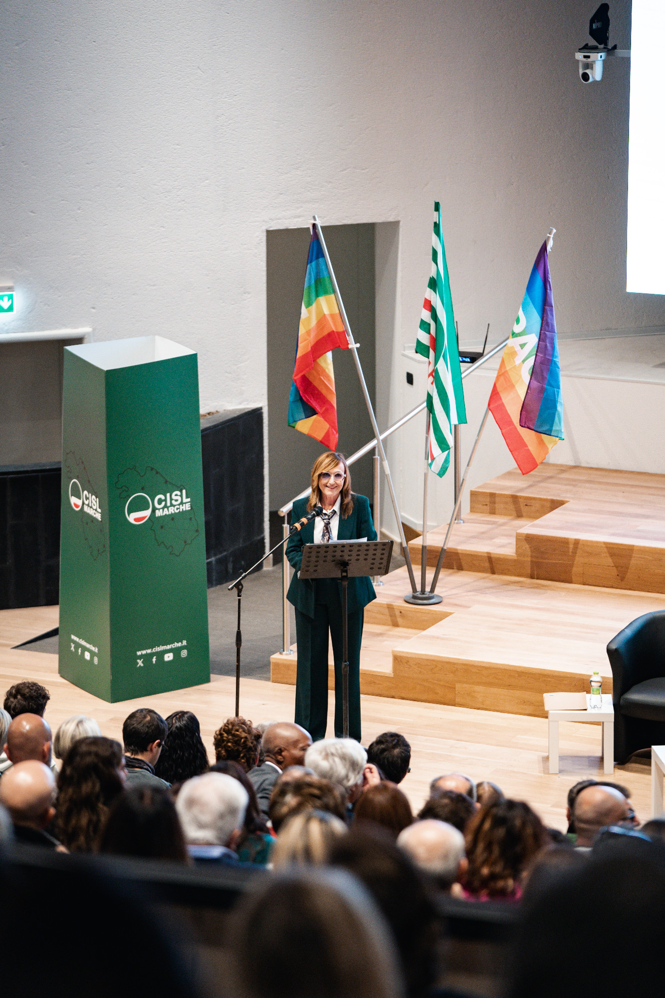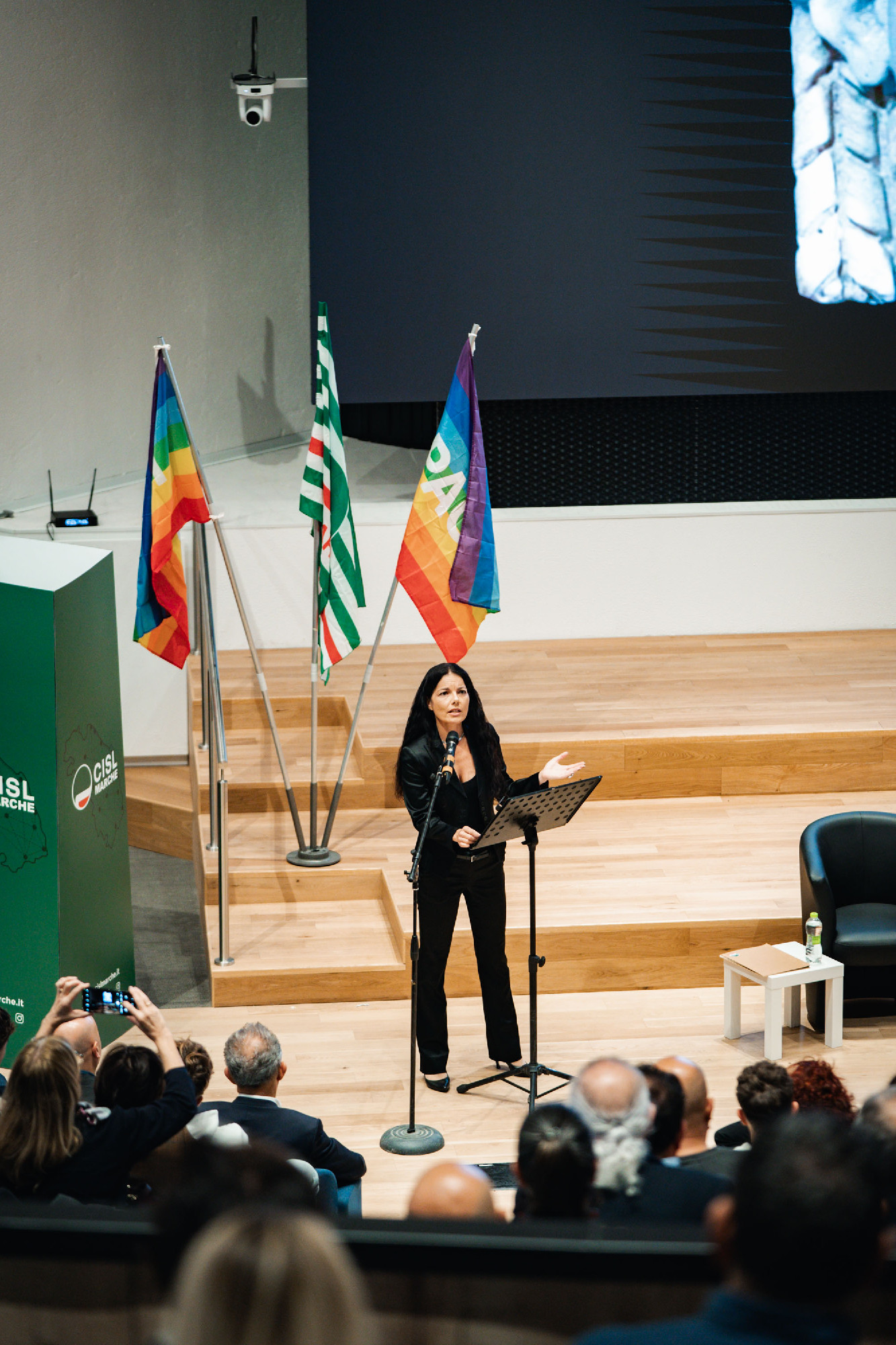 «La tappa marchigiana di oggi della Maratona per la Pace non è soltanto un evento: è un cammino che scegliamo di intraprendere insieme, passo dopo passo, intrecciando speranza e responsabilità. È l’avvio di un percorso fatto di gesti tangibili, come la campagna “Sos Gaza” capace di trasformare la solidarietà in azione, e l’indignazione in cura»: con queste parole il Segretario generale di Cisl Marche Marco Ferracuti ha aperto, nell’Aula Magna “G.Bossi” dell’Università Politecnica delle Marche l’iniziativa Cisl per la pace. Gremita, settecento i posti in sala, e a colori l’Aula Magna dell’Ateneo, volti di studenti e di lavoratori, bandiere, uniti per testimoniare la volontà di pace.