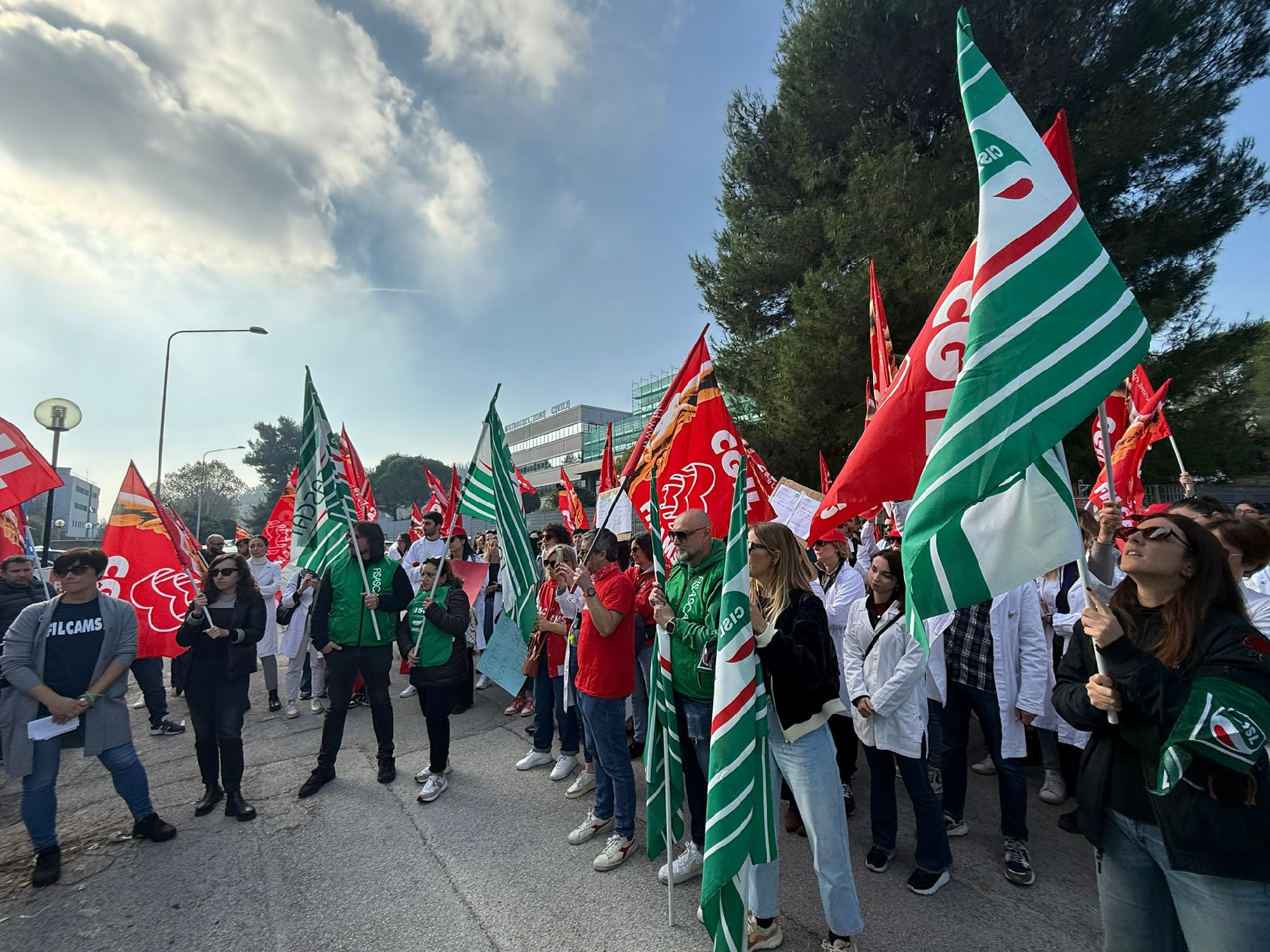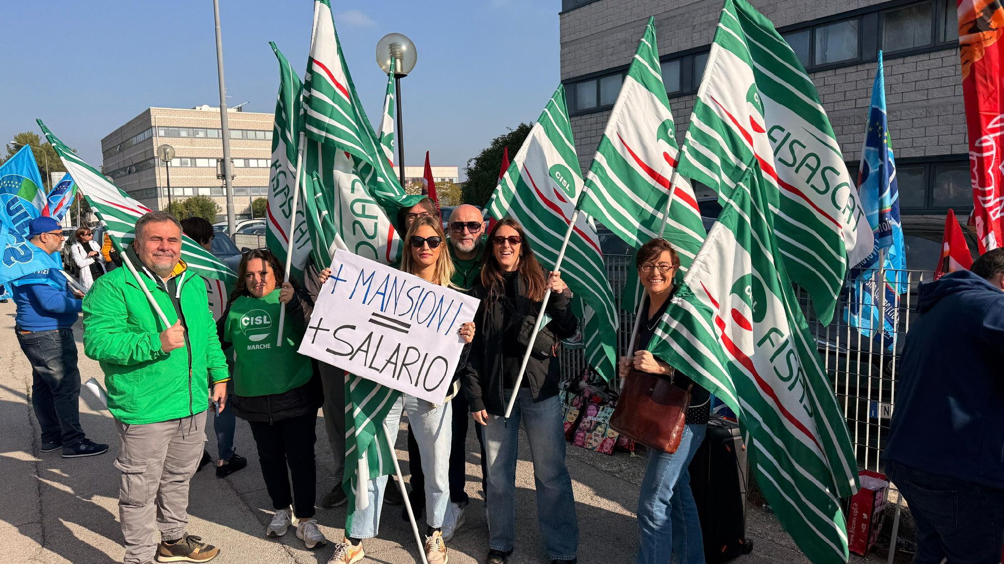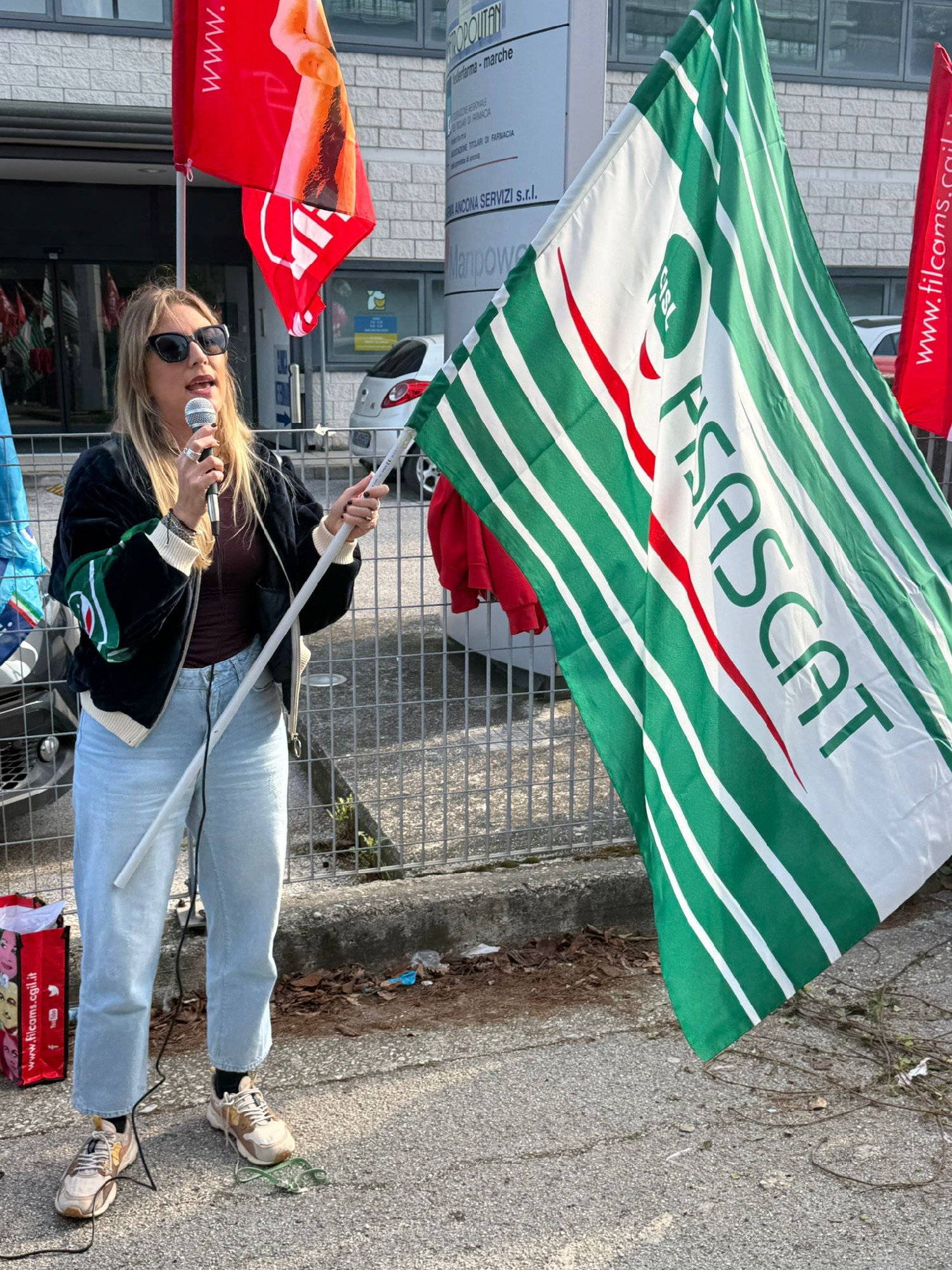 Presidio regionale, nella mattinata di oggi 6 novembre, ad Ancona, davanti alla sede regionale di FederFarma, in occasione dello sciopero nazionale dei farmacisti dipendenti delle farmacie private che, dopo mesi di negoziato dalla scadenza del contratto ad agosto 2024, hanno visto Federfarma rompere le trattative sulla richiesta di aumento retributivo di 360 euro lordi avanzata al tavolo per il rinnovo del contratto nazionale Farmacie Private dalla Filcams, Fisascat e Uiltucs; la proposta di Federfarma ferma a 180 euro lordi.