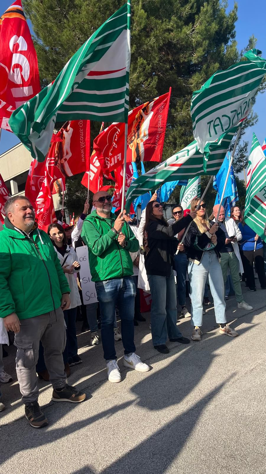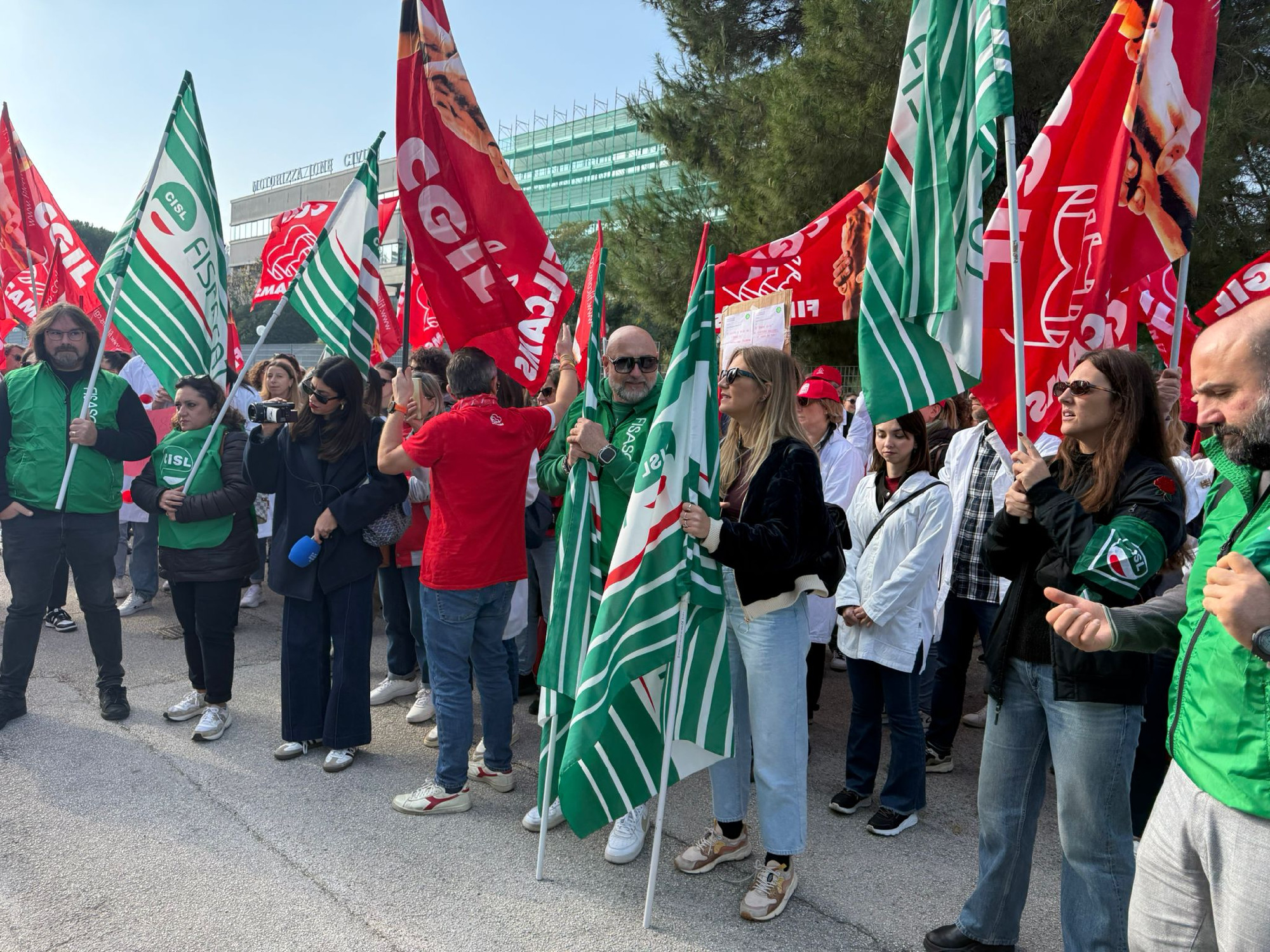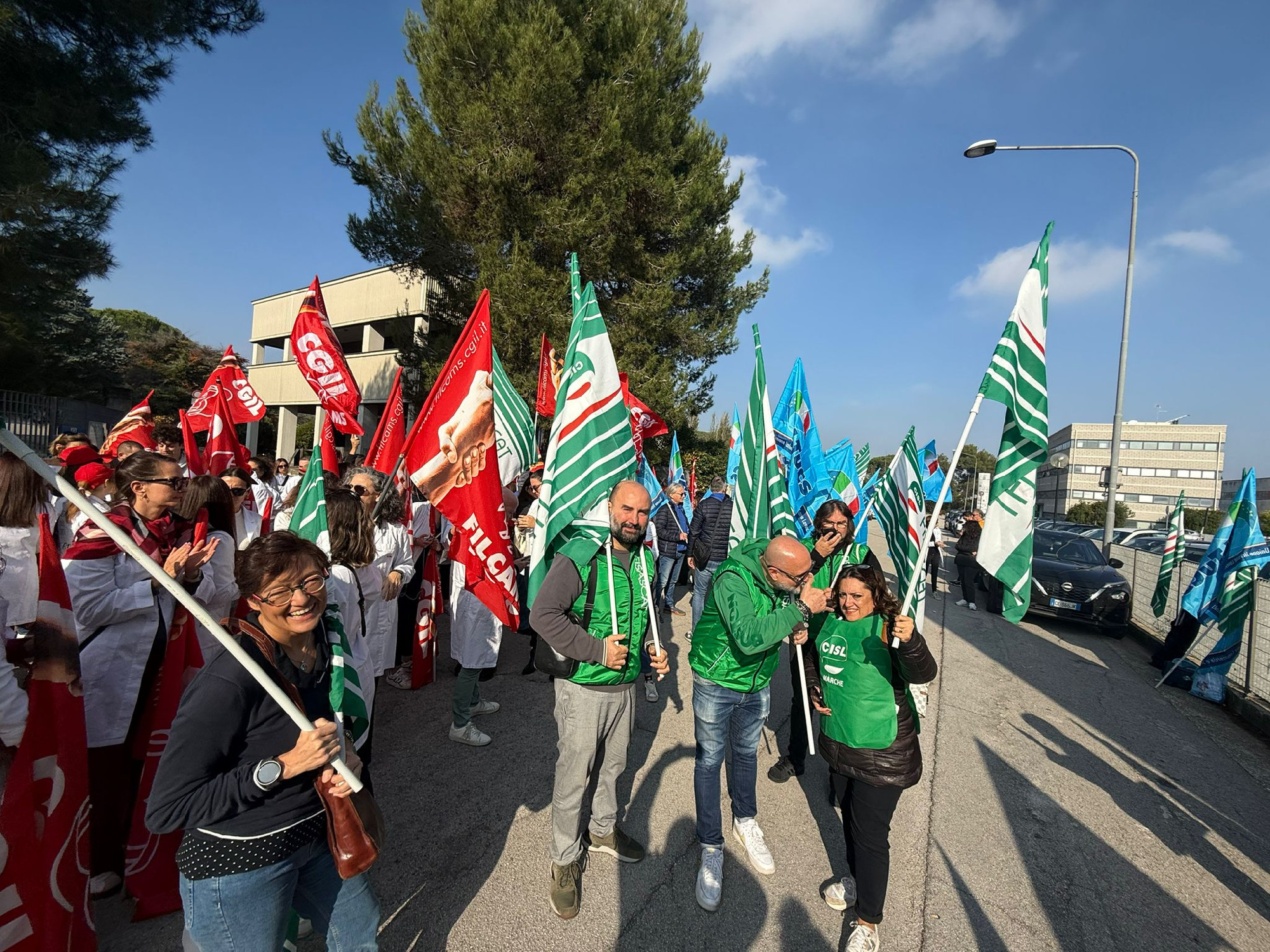 Presidio regionale, nella mattinata di oggi 6 novembre, ad Ancona, davanti alla sede regionale di FederFarma, in occasione dello sciopero nazionale dei farmacisti dipendenti delle farmacie private che, dopo mesi di negoziato dalla scadenza del contratto ad agosto 2024, hanno visto Federfarma rompere le trattative sulla richiesta di aumento retributivo di 360 euro lordi avanzata al tavolo per il rinnovo del contratto nazionale Farmacie Private dalla Filcams, Fisascat e Uiltucs; la proposta di Federfarma ferma a 180 euro lordi.